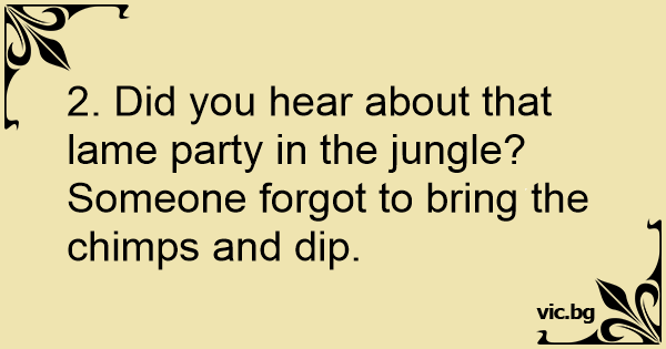 2. Did you hear about that lame party in the jungle? Someone forgot to bring the chimps and dip.