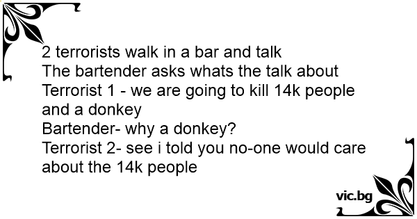 2 terrorists walk in a bar and talk