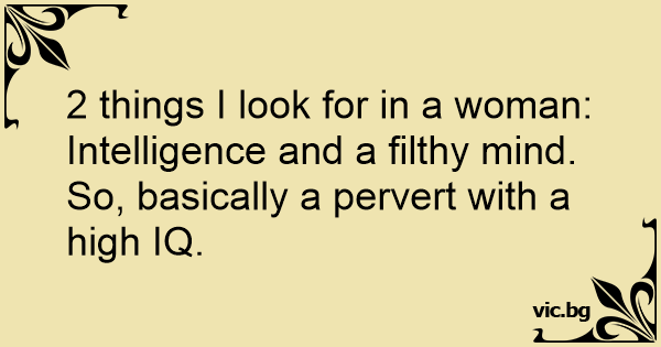 2 things I look for in a woman: Intelligence and a filthy mind.
