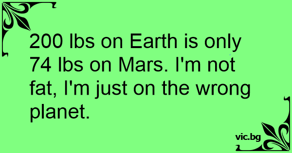 200 lbs on Earth is only 74 lbs on Mars. I'm not fат, I'm just on the wrong planet.
