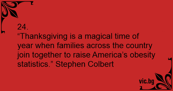 “Thanksgiving is a magical time of year when families across the country join together to raise America’s obesity statistics.” Stephen Colbert