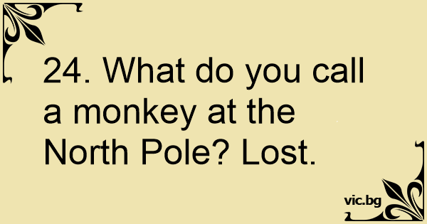24. What do you call a monkey at the North Pole? Lost.