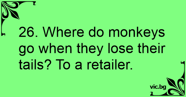 26. Where do monkeys go when they lose their tails? To a retailer.