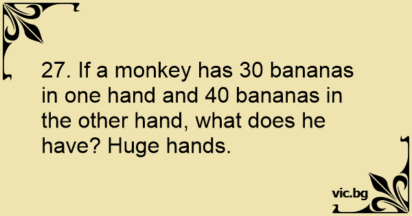 27. If a monkey has 30 bananas in one hand and 40 bananas in the other hand, what does he have? Huge hands.