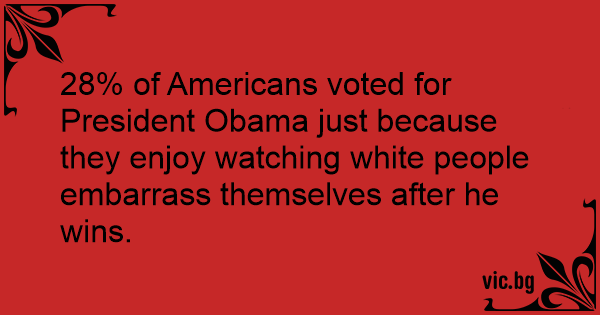 28% of Americans voted for President Obama just because they enjoy watching white people embarrass themselves after he wins.