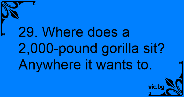 29. Where does a 2,000-pound gorilla sit? Anywhere it wants to.