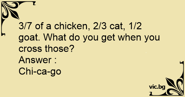 3/7 of a chicken, 2/3 cat, 1/2 goat. What do you get when you cross those?