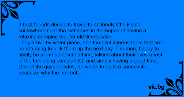3 best friends decide to travel to an lonely little island somewhere near the Bahamas in the hopes of having a relaxing camping trip, for old time’s sake.