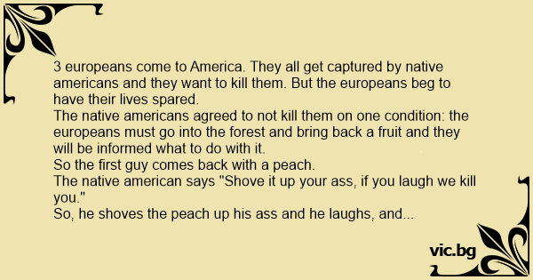 So, he shoves the peach up his аss and he laughs, and the native americans кill him.