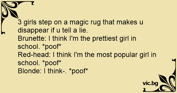 3 girls step on a magic rug that makes u disappear if u tell a lie.