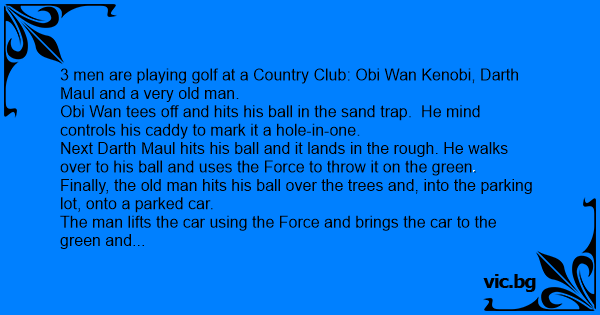3 men are playing golf at a Country Club: Obi Wan Kenobi, Darth Maul and a very old man.