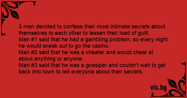 Man #1 said that he had a gambling problem, so every night he would sneak out to go the casino.