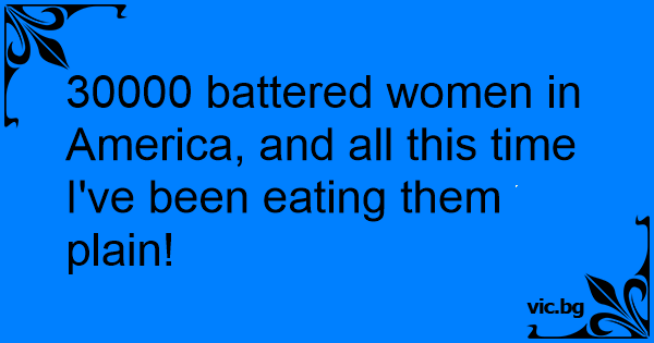 30000 battered women in America, and all this time I've been eating them plain!
