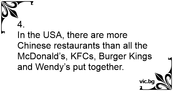 In the USA, there are more Chinese restaurants than all the McDonald’s, KFCs, Burger Kings and Wendy’s put together.