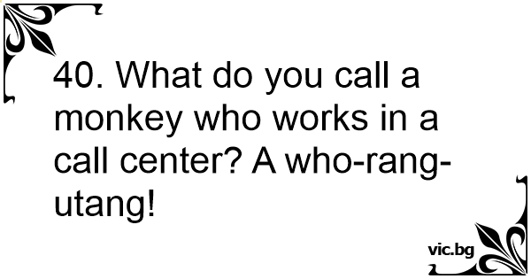 40. What do you call a monkey who works in a call center? A who-rang-utang!