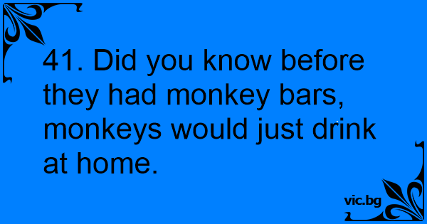 41. Did you know before they had monkey bars, monkeys would just drink at home.