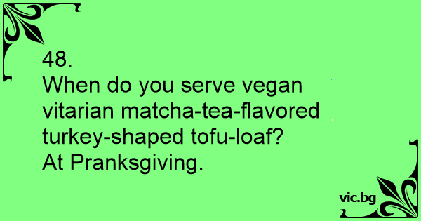 When do you serve vegan vitarian matcha-tea-flavored turkey-shaped tofu-loaf?