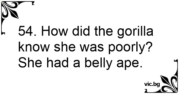 54. How did the gorilla know she was poorly? She had a belly ape.