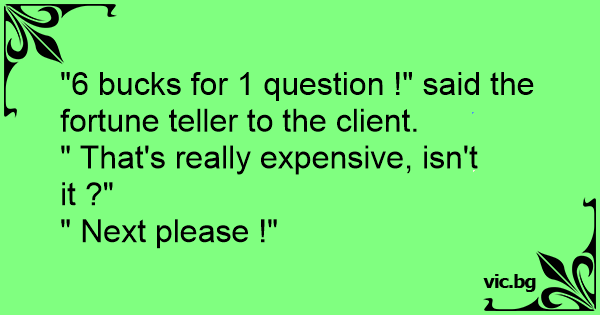 "6 bucks for 1 question !" said the fortune teller to the client.
