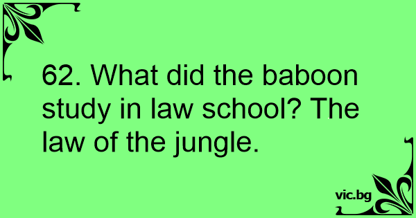62. What did the baboon study in law school? The law of the jungle.