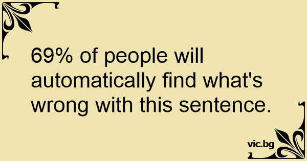 69% of people will automatically find what's wrong with this sentence.