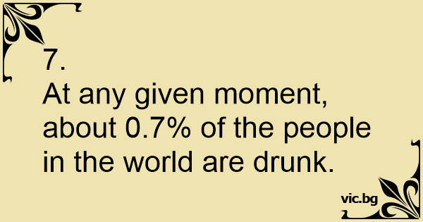 At any given moment, about 0.7% of the people in the world are drunк.