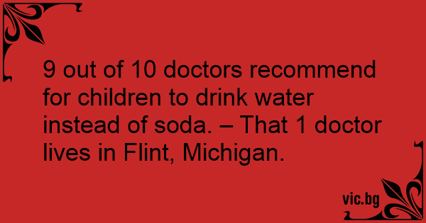 9 out of 10 doctors recommend for children to drink water instead of soda. – That 1 doctor lives in Flint, Michigan.