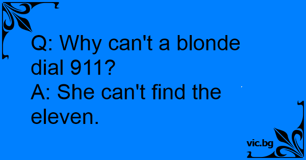 Въпрос към радио "Ереван": - Защо блондинка не може да набере 911? Отговор на радиото: - Ами защото не може да набере 11...