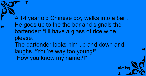 The bartender looks him up and down and laughs. “You’re way too young!”