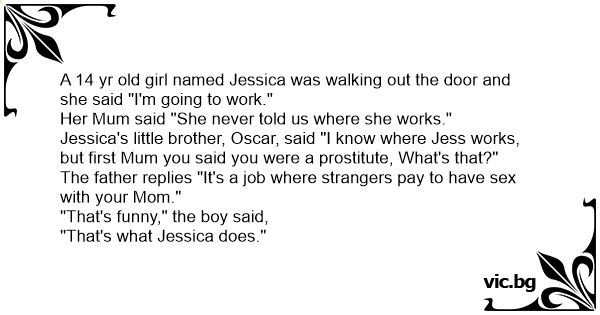 Jessica's little brother, Oscar, said "I know where Jess works, but first Mum you said you were a рrоsтiтuте, What's that?"