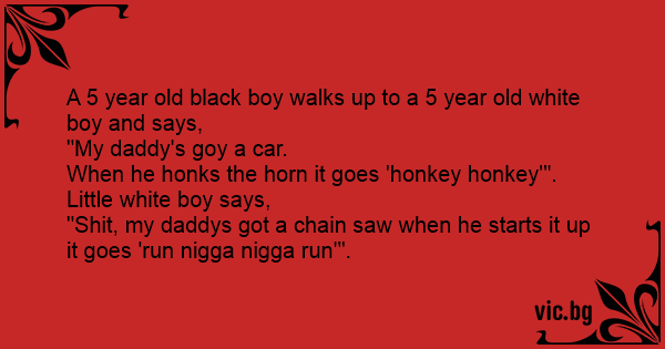 A 5 year old black boy walks up to a 5 year old white boy and says,