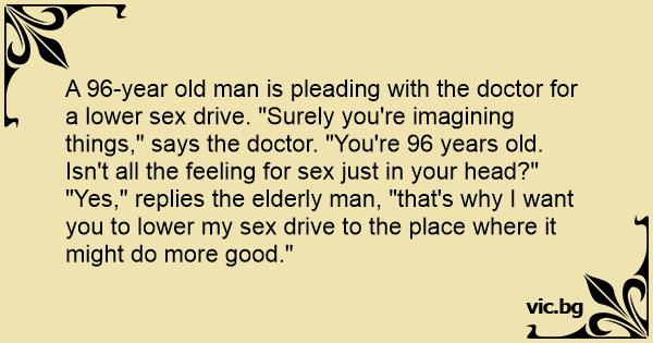 A 96-year old man is pleading with the doctor for a lower sеx drive. "Surely you're imagining things," says the doctor. "You're 96 years old. Isn't all the feeling for sеx just in your head?"