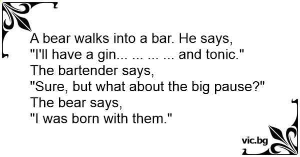 "I'll have a gin... ... ... ... and tonic." The bartender says,