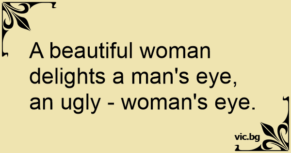 A beautiful woman delights a man's eye, an ugly - woman's eye.