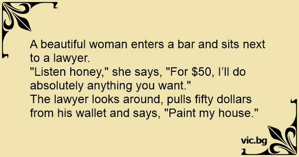 The lawyer looks around, pulls fifty dollars from his wallet and says, "Paint my house."