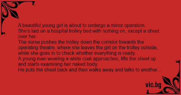 She’s laid on a hospital trolley bed with nothing on, except a sheet over her.
