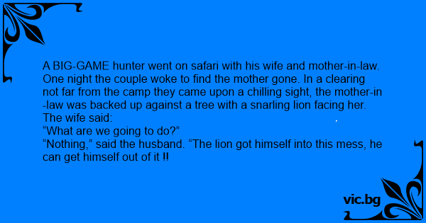 “Nothing,” said the husband. “The lion got himself into this mess, he can get himself out of it !!