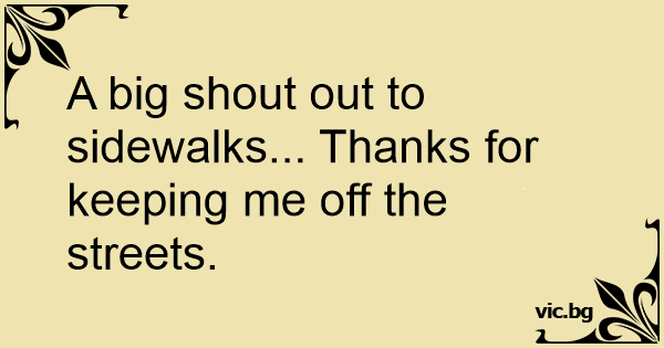 A big shout out to sidewalks... Thanks for keeping me off the streets.