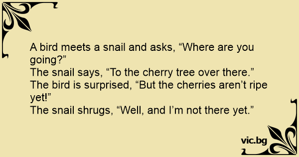The snail shrugs, “Well, and I’m not there yet.”