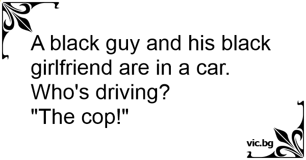 A black guy and his black girlfriend are in a car. Who's driving?