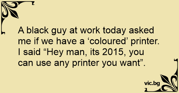 A black guy at work today asked me if we have a ‘coloured’ printer. I said “Hey man, its 2015, you can use any printer you want”.