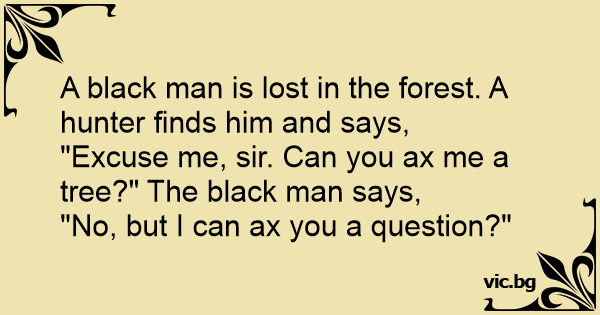 "Excuse me, sir. Can you ax me a tree?" The black man says,