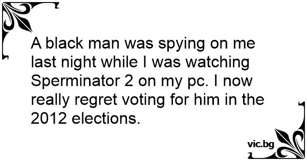 A black man was spying on me last night while I was watching Sperminator 2 on my pc. I now really regret voting for him in the 2012 elections.