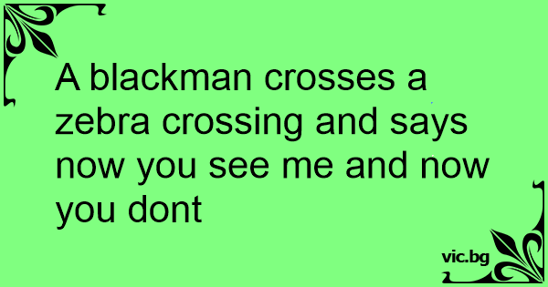 A blackman crosses a zebra crossing and says now you see me and now you dont