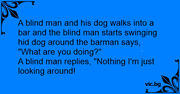 A blind man and his dog walks into a bar and the blind man starts swinging hid dog around the barman says, "What are you doing?"