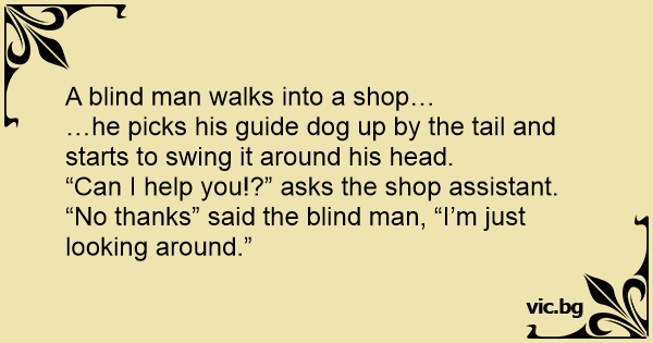 …he picks his guide dog up by the tail and starts to swing it around his head.