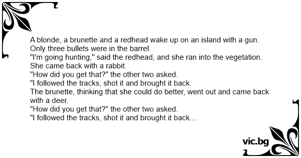 A blonde, a brunette and a redhead wake up on an island with a gun.