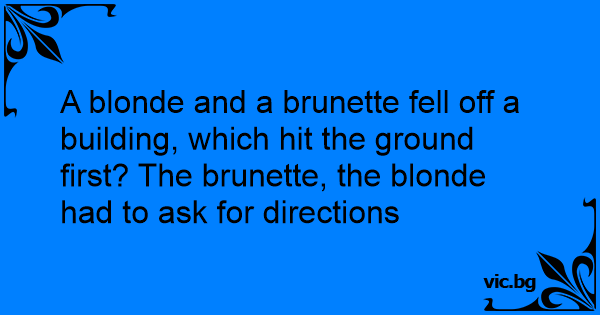 A blonde and a brunette fell off a building, which hit the ground first? The brunette, the blonde had to ask for directions
