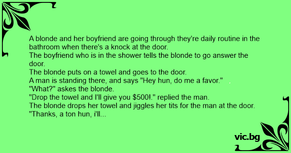"Drop the towel and I'll give you $500!." replied the man.