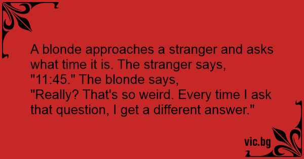 A blonde approaches a stranger and asks what time it is. The stranger says,